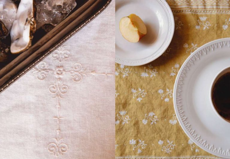 La Maison Alix D. Reynis, reconnue pour ses créations en porcelaine, étend son univers à l’art du textile avec « Henriette & Eugénie », sa première collection de linge de maison.