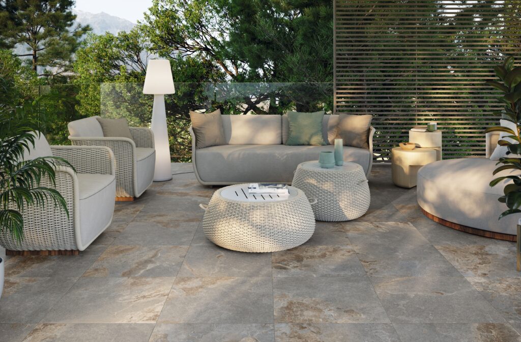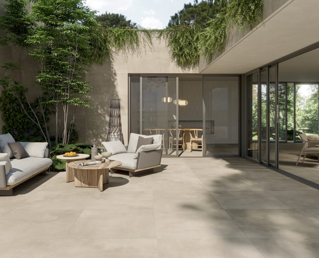 Le grès cérame répond aux contraintes de l’outdoor : faible porosité, résistance aux UV et aux variations climatiques, propriétés antidérapantes. Les formats évoluent vers des dalles épaisses et des surfaces XXL, facilitant la pose et renforçant la continuité visuelle entre intérieur et extérieur. Effets de matière, modularité des systèmes et progrès de l’impression numérique confirment cette montée en puissance : la céramique devient un élément structurant des projets outdoor, à la croisée du design et de l’architecture.