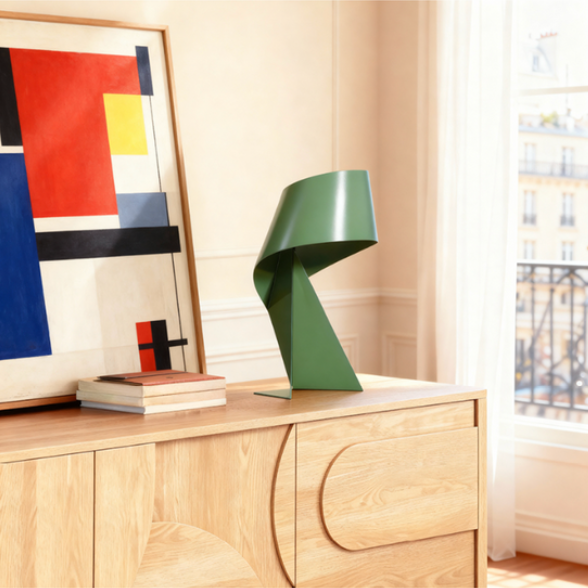 « Avec Ribbon, j’ai voulu que la lumière devienne mouvement. Elle exprime la poésie d’un geste figé dans le métal », confie Claire Norcross, qui signe ici une pièce emblématique de la collection Habitat Édition.
