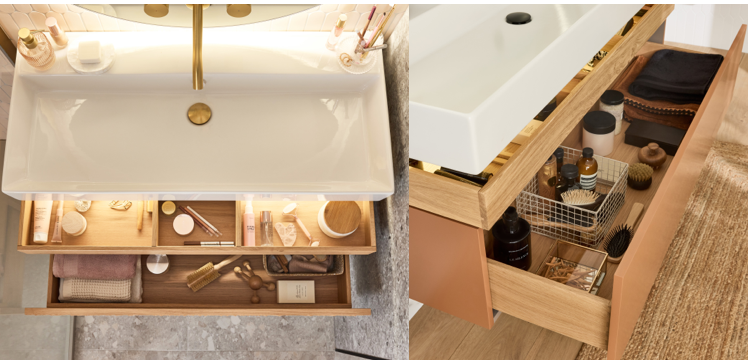 Avec Café Terrace, Jacob Delafon affirme une vision moderne et luxueuse de la salle de bains. Inspirée de la collection Terrace, cette nouvelle gamme fabriquée en France incarne un savoir-faire d’exception, mariant lignes épurées, matériaux nobles et personnalisation poussée. Le meuble sous-vasque, décliné en cinq largeurs (de 60 à 140 cm), adopte un style minimaliste sans poignées. Il se distingue par ses façades en bois massif – lisse ou effet drap de soie – ou encore laquées, disponibles dans vingt coloris et trois finitions : brillante, satinée ou velours. Les tiroirs intègrent un système pousse-lâche et une fermeture amortie, alliant esthétique et confort d’usage. Point d’orgue de la collection : le plumier lumière en chêne massif, dissimulé sous le plan-vasque, offre un éclairage doux et des compartiments raffinés. Trois teintes de bois sont proposées : chêne naturel, chêne torréfié et chêne obscur, pour des contrastes aussi subtils que chaleureux. La gamme se complète de plan-vasques en céramique Vivienne, de miroirs sertis compatibles avec la robinetterie murale Grands Boulevards, ainsi que de colonnes suspendues, commodes ou étagères gain de place. Chaque élément trouve sa juste place, dans un esprit boudoir revisité, entre modularité, style et savoir-faire français.