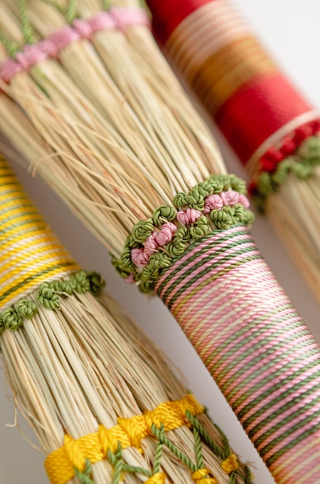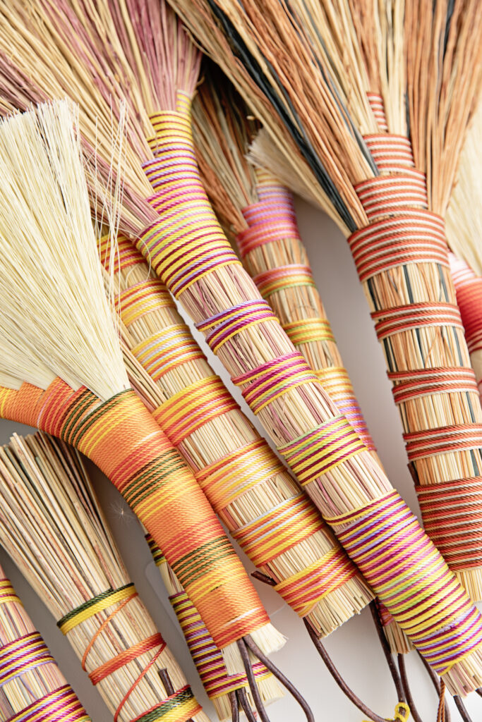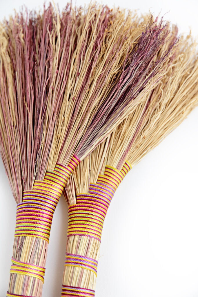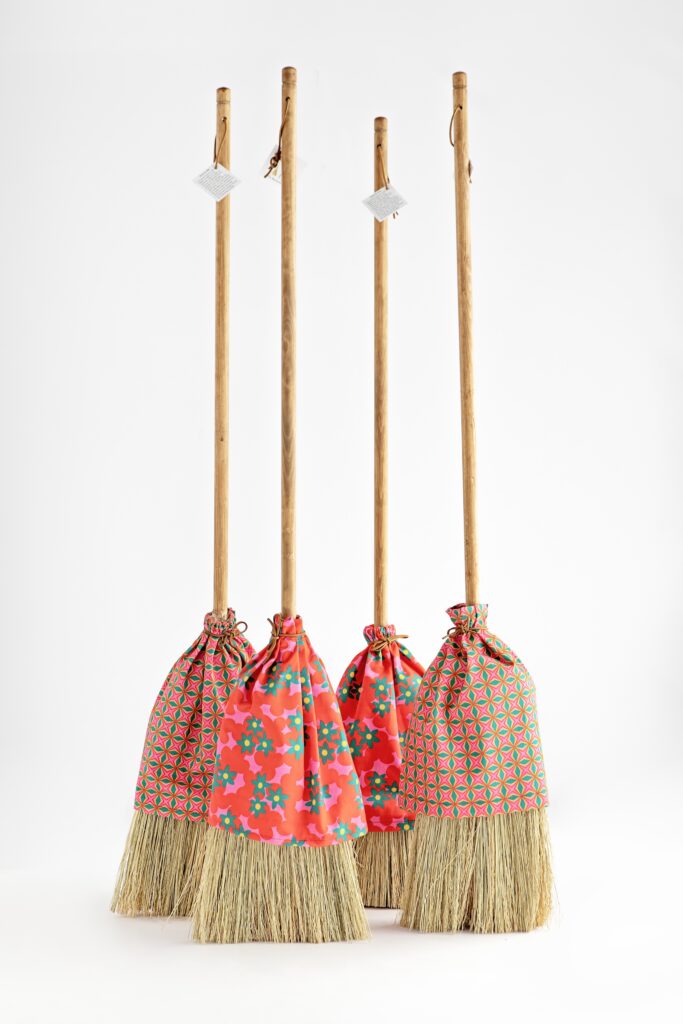 Chaque pièce est fabriquée à la main à partir de matériaux naturels et locaux, dans des séries limitées. Le sorgho, désormais cultivé en France dans le cadre d’expérimentations agricoles, vient renforcer cette démarche engagée, tandis que le bois issu de forêts gérées durablement structure les montures. Entre utilité et esthétique, les balais se distinguent par leurs finitions colorées et leur dimension presque décorative.