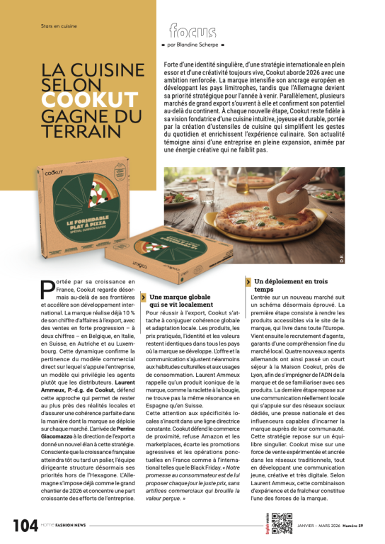 Forte d’une identité singulière, d’une stratégie internationale en plein essor et d’une créativité toujours vive, Cookut aborde 2026 avec une ambition renforcée. La marque intensifie son ancrage européen en développant les pays limitrophes, tandis que l’Allemagne devient sa priorité stratégique pour l’année à venir. Parallèlement, plusieurs marchés de grand export s’ouvrent à elle et confirment son potentiel au-delà du continent.