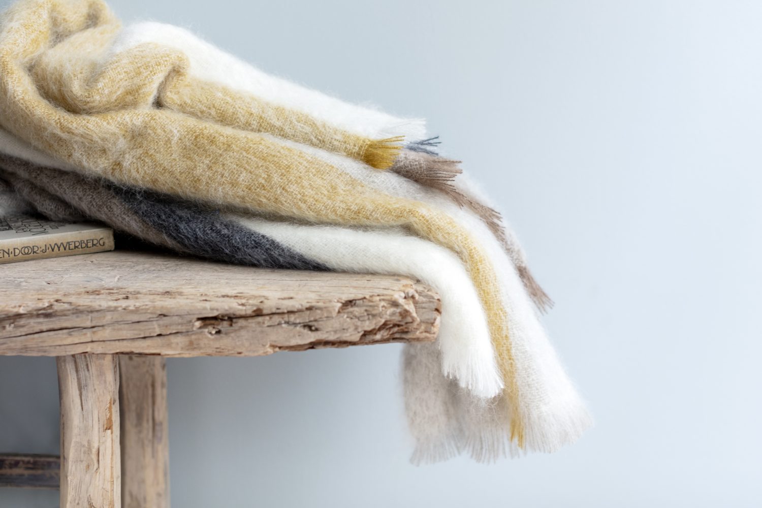 Réalisée en Mohair – une fibre obtenue à partir de poil de chèvre Angora – la collection Rovaniemi puise son inspiration dans la palette de coloris du linge de table éponyme créé par Le Jacquard Français. Brun de Vian-Tiran a été la première marque à utiliser la légèreté et la douceur du Mohair pour ses plaids et couvertures.