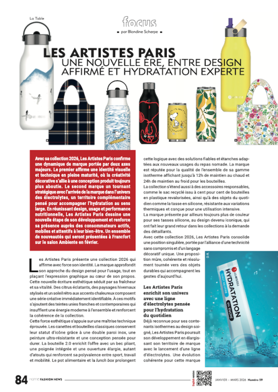 Avec sa collection 2026, Les Artistes Paris confirme une dynamique de marque portée par deux axes majeurs. Le premier affirme une identité visuelle et technique en pleine maturité, où la créativité décorative s’allie à une conception produit toujours plus aboutie. Le second marque un tournant stratégique avec l’arrivée de la marque dans l’univers des électrolytes, un territoire complémentaire pensé pour accompagner l’hydratation au sens large.