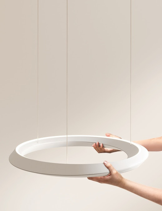 La suspension Tidal, rejoint la version plafonnier portant le même nom pour former une nouvelle famille de luminaires. Cette nouvelle collection signée Needs Studio, présente un design éthéré, composé d’un anneau qui symbolise le mouvement incessant des marées et des corps célestes. Le corps principal de la lampe a été nouvellement conçu avec une structure à double coque qui équilibre la diffusion entre lumière directe et indirecte pour éviter l’éblouissement. Tous les éléments techniques sont dissimulés dans le corps de la lampe pour souligner la valeur esthétique de l’objet et le design à fort impact ayant un aspect différent selon le point d’observation par le bas. Tidal projette la lumière simultanément vers le bas et vers le haut avec un équilibre parfait de 50 %, et est suspendue à trois câbles fins partant de la patère circulaire, pour se fondre dans l’espace et donner l’impression de fluctuer légèrement au plafond.