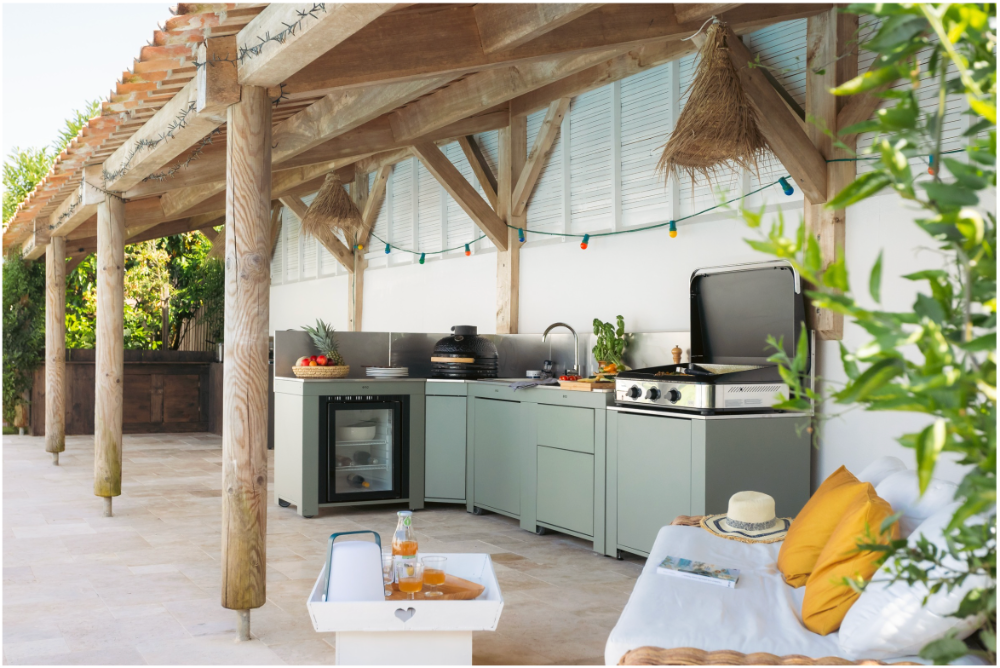 ENO poursuit le développement de sa cuisine d’extérieur Modulo, première gamme du marché certifiée Origine France Garantie, avec l’introduction d’un nouveau coloris sauge.