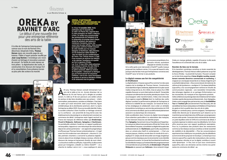 La digitalisation s’impose aujourd’hui comme l’un des axes majeurs de la stratégie de Thomas Herson. Construction d’une identité en ligne cohérente, déploiement d’un plan social media à long terme et, d’ici 2026, mise en place d’un CRM capable d’assurer un suivi précis et réactif : l’ensemble compose une démarche structurée, pensée pour durer. Pour accompagner cette transformation, Oreka s’est entourée d’une agence experte (Divine) afin de maîtriser outils digitaux et performance globale tout en renforçant la visibilité de ses marques. Ce travail de fond s’ajoute à l’affirmation d’une nouvelle stratégie terrain, fondée sur la présence simultanée des partenaires d’Oreka sur les grands événements professionnels comme les salons Maison&Objet ou EquipHotel.