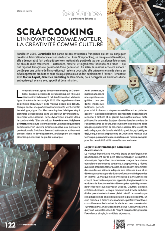 When Marine Loynet speaks about Scrapcooking’s vision, one guiding principle immediately stands out: innovation. This core value lies at the heart of the brand’s 2026 strategy and has been embedded in its DNA from the very beginning. Each year, a steady flow of new products enriches the catalogue, reflecting a balance between range development, adaptation to evolving uses and a secure positioning in an increasingly competitive market. This momentum follows the path set by Rose Marie and Stéphane Brémard, the visionary founders of Caramelle, who successfully opened up a universe once reserved for professional pastry chefs. Stéphane Brémard remains actively involved in development, extending the pioneering spirit that continues to guide the brand.
