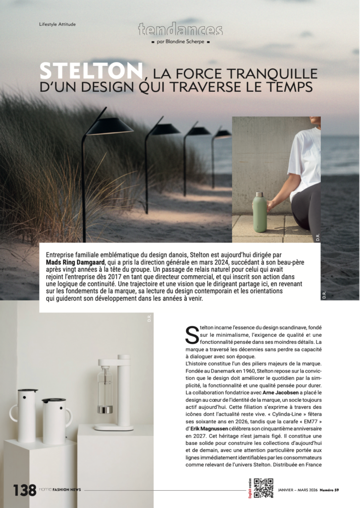 On the international stage, Stelton claims a singular position. Deeply rooted in Denmark and Scandinavia, the brand is part of an open design culture, without ever being reduced to a specific aesthetic or territory. On a global scale, it is perceived as a player embodying calm, permanence and cultural depth. Even when the Stelton name is not immediately recognised, some of its emblematic pieces are instinctively identified. The brand fully participates in the contemporary dialogue around the art of living, defending a vision of design that favours meaning and longevity over the succession of fleeting trends. International development currently rests on key markets such as Denmark, Sweden, Norway and Germany, where the brand has established structures. At the same time, Stelton explores international collaborations that foster cross-recognition, such as partnerships developed over time with Paul Smith, Norman Foster and Bernadotte & Kylberg. Long focused on tableware, the brand has gradually expanded its field of expression to home textiles, small domestic appliances and lighting. This evolution is conceived as a natural extension of its universe, with the ambition of strengthening its legitimacy within the home. At Stelton, coherence is not seen as a limitation, but as a strength—particularly in a world marked by constant acceleration.