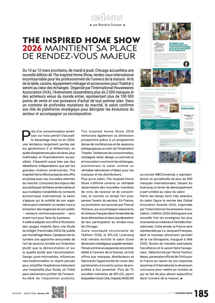 Nearly one in three American consumers plans to entertain more at home in 2026. This trend is largely driven by Generation Z and Millennials, who are seeking more authentic, controlled and financially accessible experiences. Attended by both independent retailers and major U.S. chains, The Inspired Home Show offers a proposition aligned with these evolving market expectations.