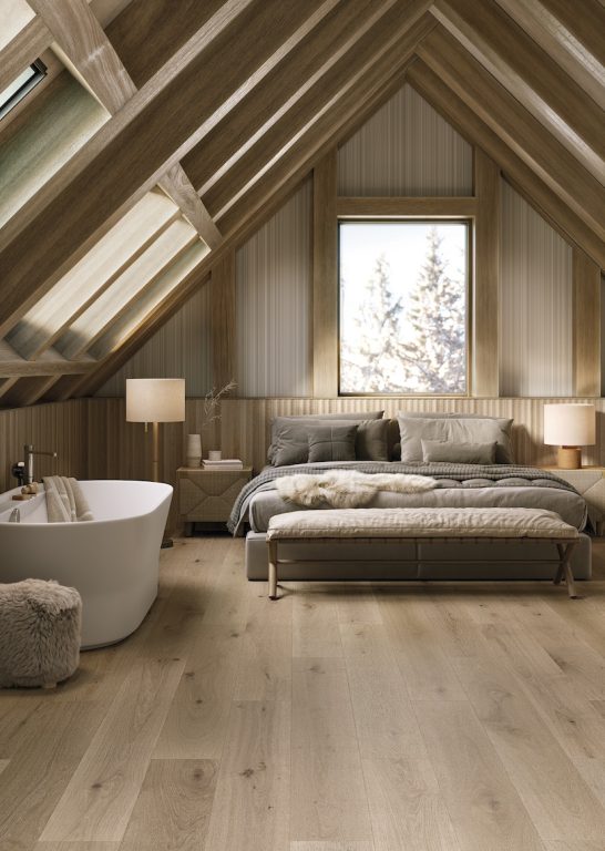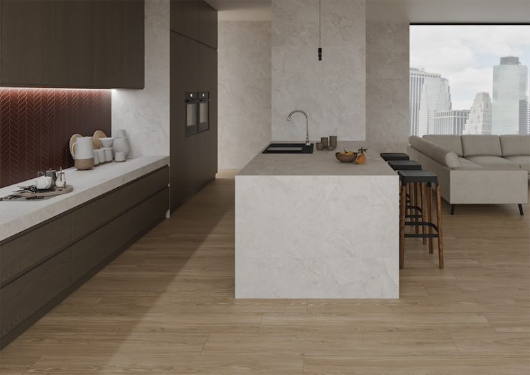 Dans les salons, elle associe design et confort avec des surfaces continues et raffinées. En cuisine, elle multiplie les effets décoratifs grâce à une diversité de motifs et de couleurs, tandis que dans la chambre, les carreaux effet bois instaurent une atmosphère chaleureuse et apaisante. Robuste, facile d’entretien et durable, la céramique s’impose également dans les espaces de passage ou les zones extérieures.