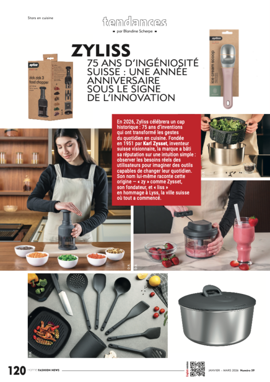For this anniversary year, Zyliss intends to mark a new milestone. At Ambiente 2026, the brand will unveil around sixty new products, inaugurating a major new phase of development, with some entries even signalling its arrival in entirely new categories. A way to honour three quarters of a century of history while reaffirming the ambition to remain a key player in culinary innovation—capable, time and again, of transforming the way the world prepares its meals.